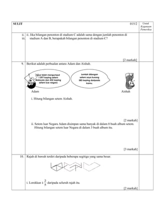 UJIAN MATEMATIK KERTAS 1 BULAN MAC 2017 8 Bahagikan 5 dengan 1 3 A 1 B 1 12 5 C 5 D 15 9 Apakah nilai yang sama bagi dua tiga perseratus. Senarai contoh Soalan Tingkatan 3 Untuk. Admin October 15 2017.